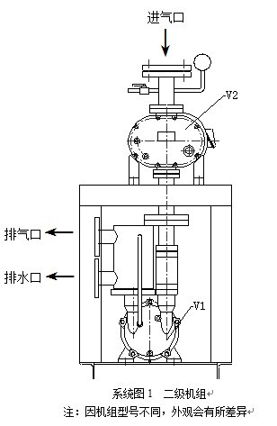 該機組的主泵為V2型羅茨真空泵,由V1型液環真空泵作為前級泵(如系統圖1),為保證各泵的正常運轉,應按以下程序操作: